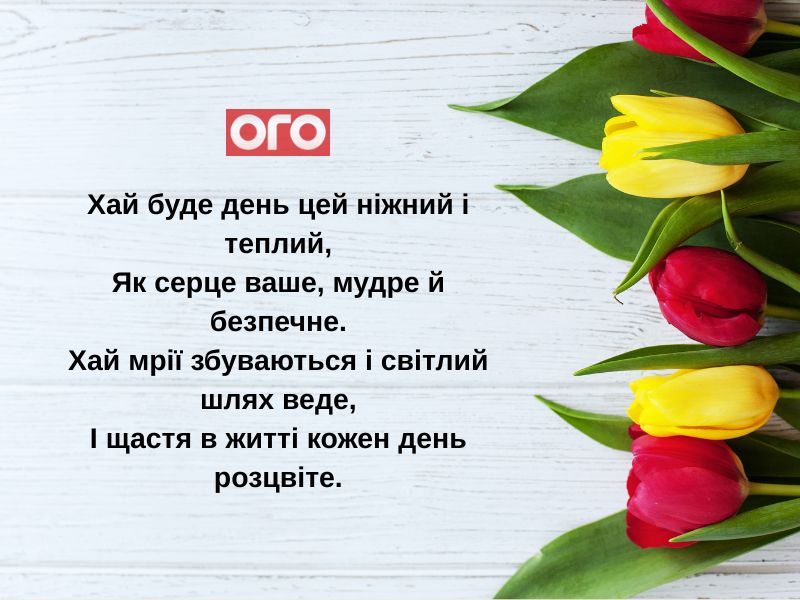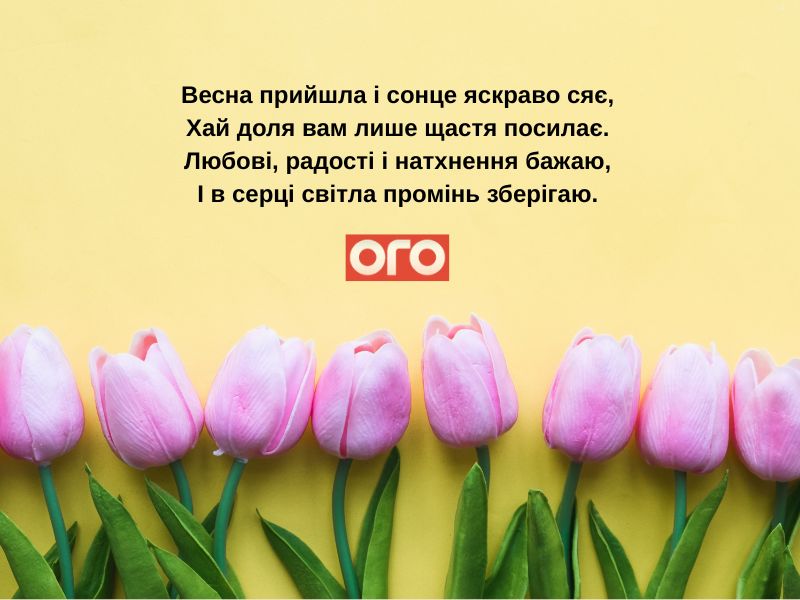 Щиро вітаю зі святом весни! Бажаю здоров’я, щастя, натхнення та здійснення всіх мрій. Нехай у вашому серці завжди панують гармонія і радість.