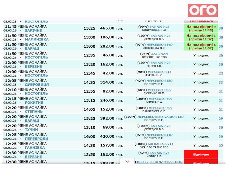 Читайте також: розклад руху автобусів, маршрутних таксі з Рівненського автовокзалу.