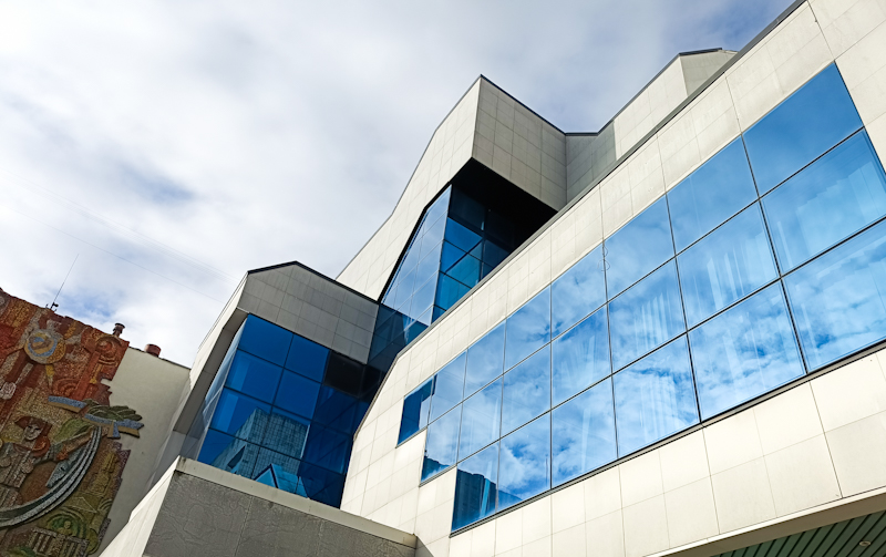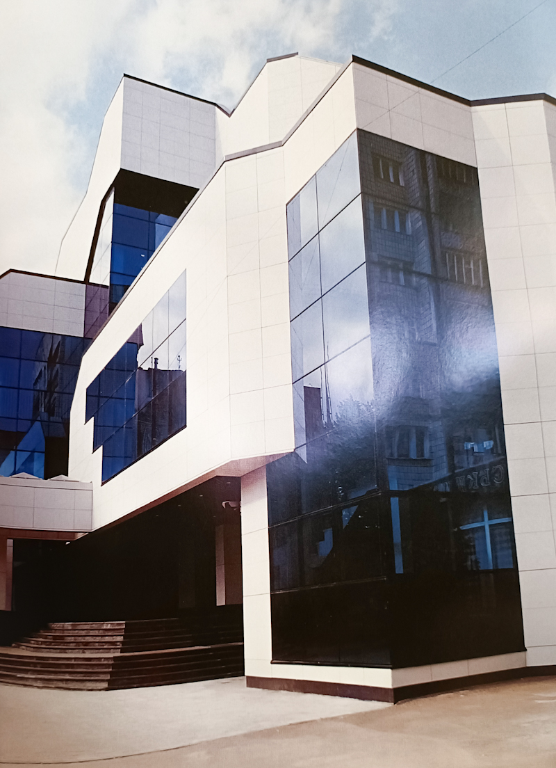 Побудована у 1996 році в стилі хай-тек, споруда на Соборній, 40 свого часу вражала рівнян сучасністю, скляними фасадами й технологічністю. У книзі «Рівненщина» (1997) Анатолія Мізерного вона виглядала як зразок нового міського стилю — світла, доглянута, з відчуттям прогресу.