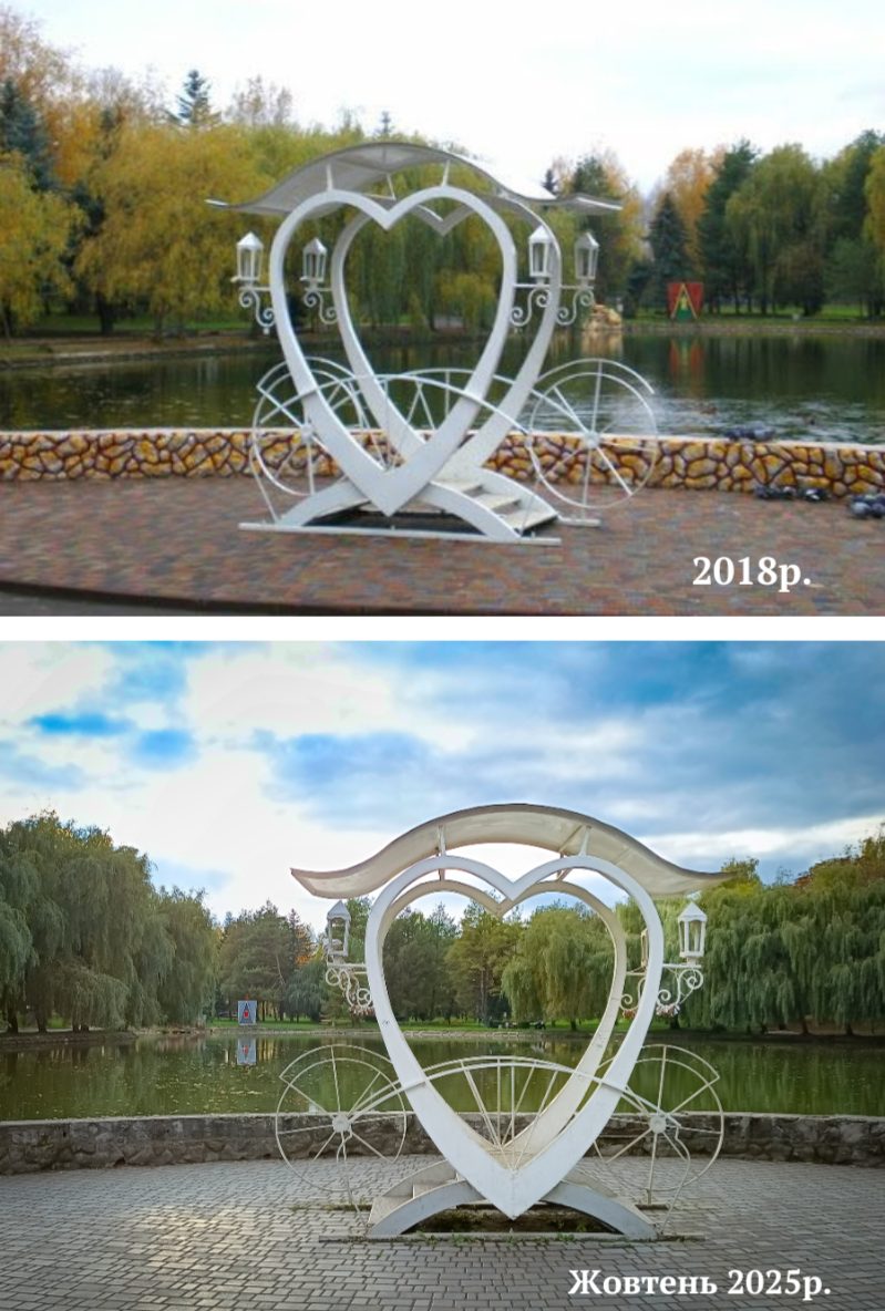 А ще Лебединка — справжня столиця романтики. У 2012 році тут встановили дві металеві композиції — «Закохані лебеді» та «Весільну карету» у формі серця. Відтоді ці об’єкти стали символами любові та популярними локаціями для весільних фотосесій.