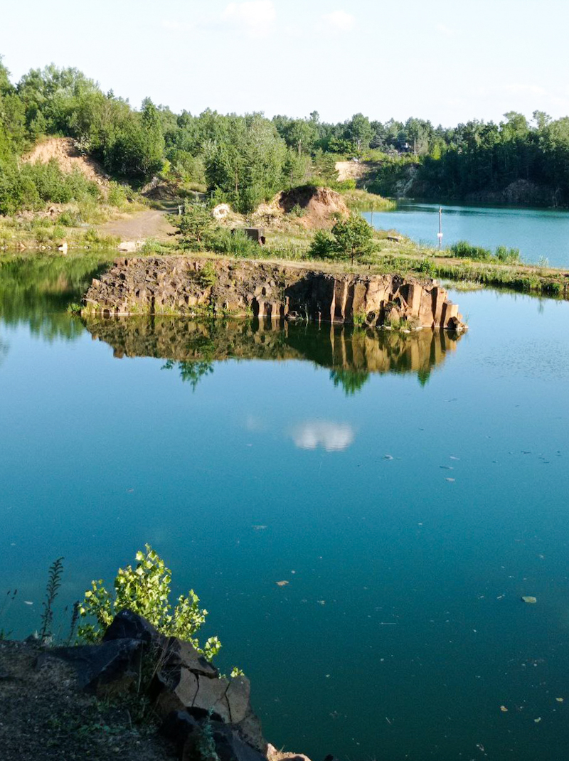 Влітку це місце особливе живе: туристи, що вирушають стежками до смарагдового озера, купання у прохолодній воді затопленого кар’єру. Човни повільно ковзають до «острова кохання», де зелені крони обіймають базальтові скелі. Тут відчуваєш філософський спокій — той самий, що так не вистачає в осінніх буднях.