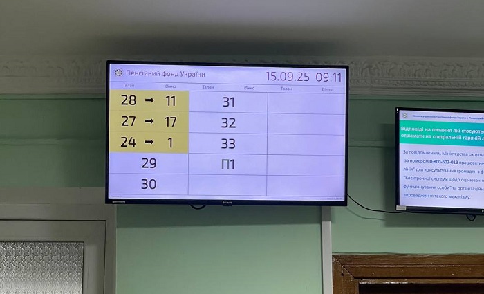 Далі залишається чекати буквально хвилин 5-10, коли номерок висвітиться на табло. Система показує не лише номер, а й робоче місце спеціаліста.