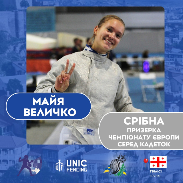 Сьогодні в Тбілісі, Грузія, стартував кадетський чемпіонат Європи з фехтування. Українська шаблістка Майя Величко, представниця Київської міської школи вищої спортивної майстерності, принесла збірній першу нагороду у медальному заліку.