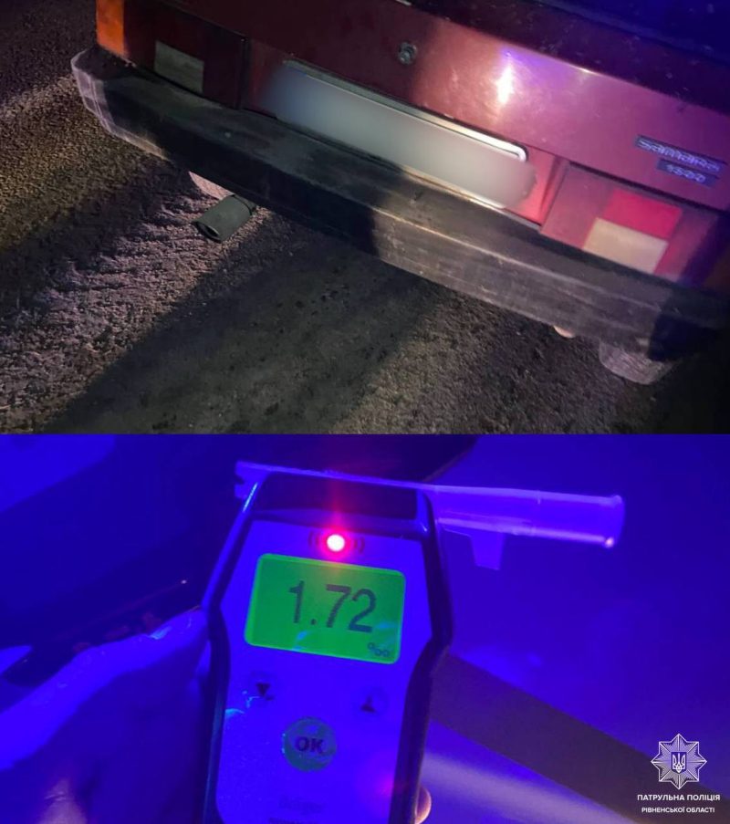 Результат тесту показав 1,72 проміле алкоголю в організмі. За результатами перевірки інспектори склали на водія адміністративні матеріали за ч. 1 ст. 130 КУпАП (керування транспортним засобом у стані алкогольного сп’яніння) та ч. 1 ст. 121 КУпАП (керування транспортним засобом із технічною несправністю).