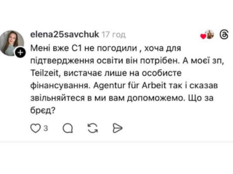 Головна зміна – відсутність автоматичного доступу до курсів. Без направлення від Jobcenter або міграційної служби навчання доведеться оплачувати самостійно. Повна вартість може сягати близько 1600 євро. Держава фінансуватиме навчання лише тоді, коли його проходження офіційно визначене як обов’язкове. Такі зміни підтверджують і самі українці, які наразі проживають на території Німеччини.