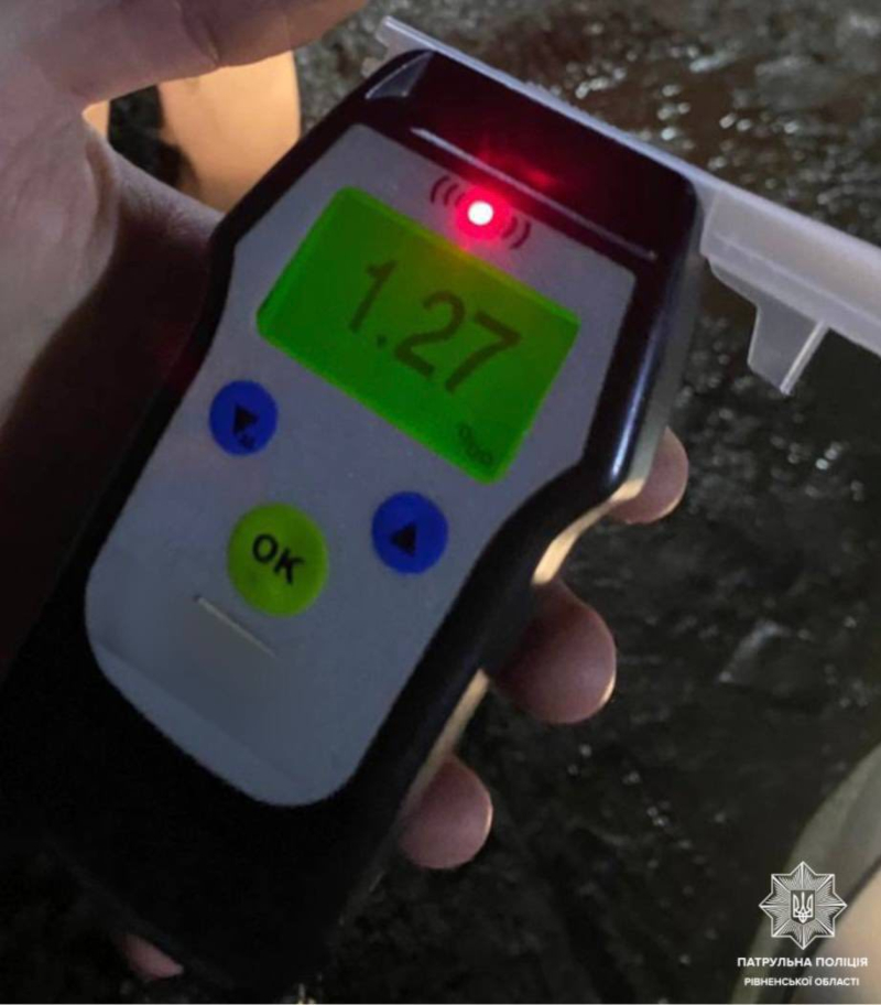 За інформацією поліції, результат тестування показав 1,27 проміле. Це значно перевищує допустимі норми та свідчить про стан сп’яніння під час керування.