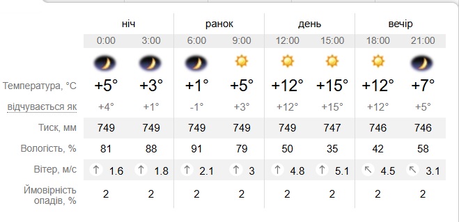 - По області: вночі від -2° до +3°, вдень +12°…+17°