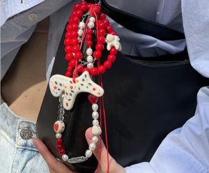Намиста стали головним хітом цього сезону. Сумкове намисто — це ланцюжок або перлинна прикраса, що кріпиться до ручок чи ремінця. Воно може бути з металу, пластику або натуральних каменів. Такий аксесуар миттєво робить образ більш вишуканим.