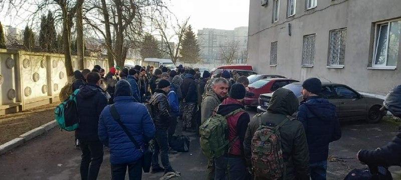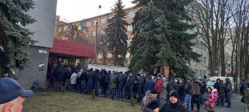 Під стінами військкомату у Рівному, на вулиці, Грабник, 2 збираються рівняни, котрі виявили бажання записатися до лав Збройних сил і Територіальної оборони. Від ранку під стінами військового комісаріату утворилися черги.