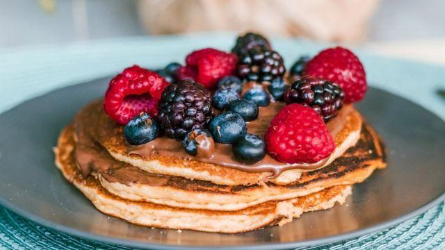 3. У кінці додайте до тіста натерті яблука і корицю. Перемішайте все ложкою та смажте на сухій пательні без масла. Перегортайте панкейки, коли на них почнуть з’являтися маленькі дірочки. Смачного!