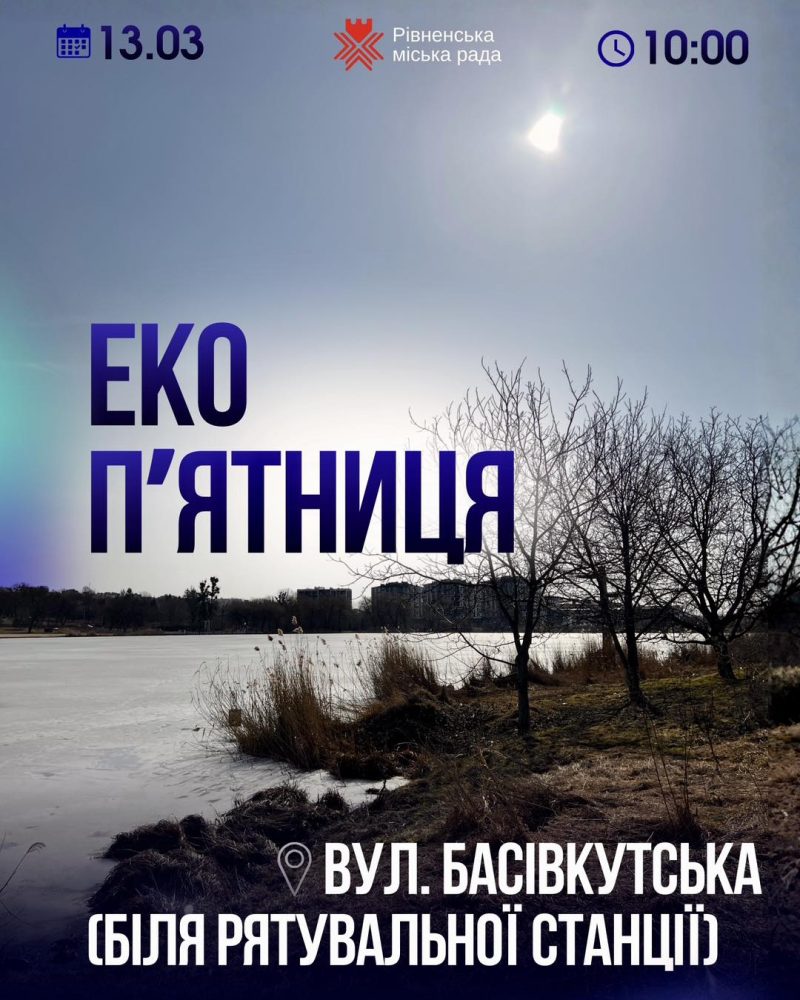 Жителів громади запрошують долучитися до екологічної ініціативи «Еко-п’ятниця», яка відбудеться на вулиці Басівкутській у Рівному. Захід запланований на 13 березня, початок о 10:00.