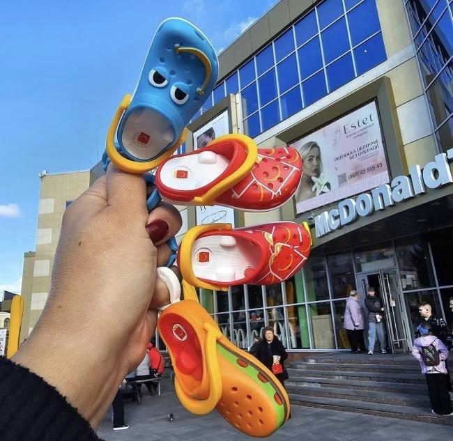 У Рівному люди стоять в чергах до «Макдональдса», щоб отримати нові іграшки-крокси.