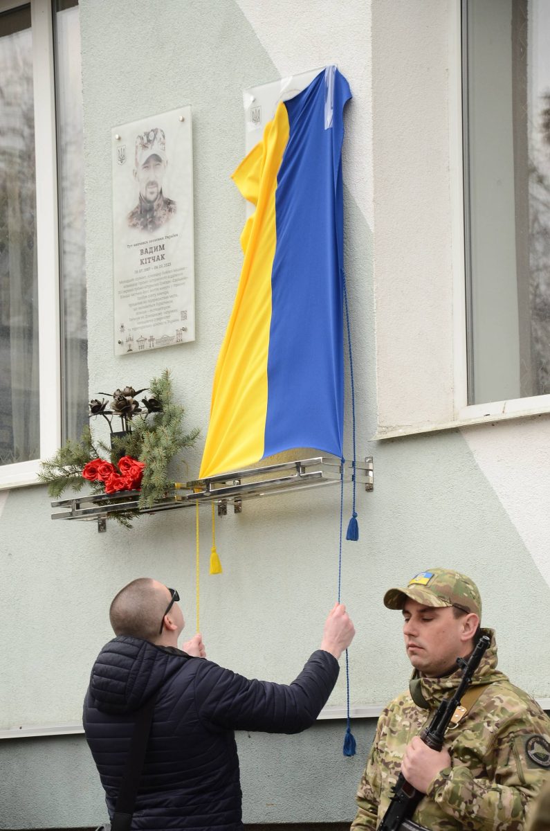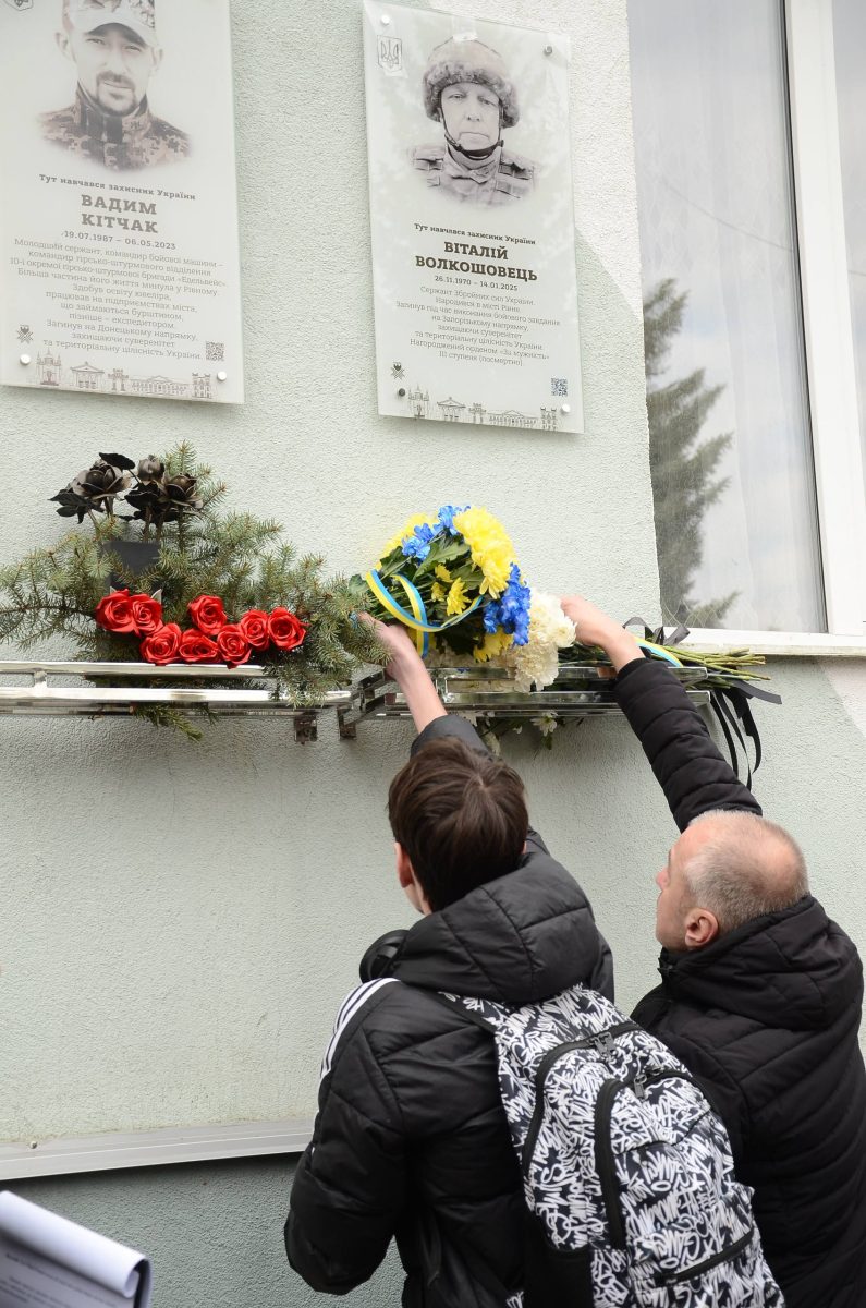 На фасаді Рівненського ліцею №18 встановили меморіальну дошку на честь загиблого військовослужбовця Віталія Волкошовця.