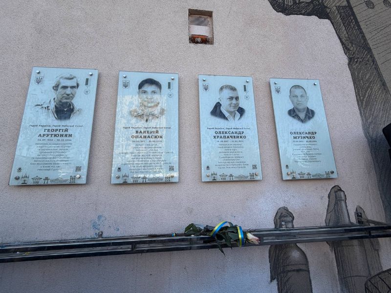 Присутні поклали квіти до муралу та вшанували пам’ять загиблих хвилиною мовчання.