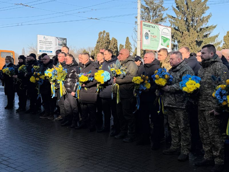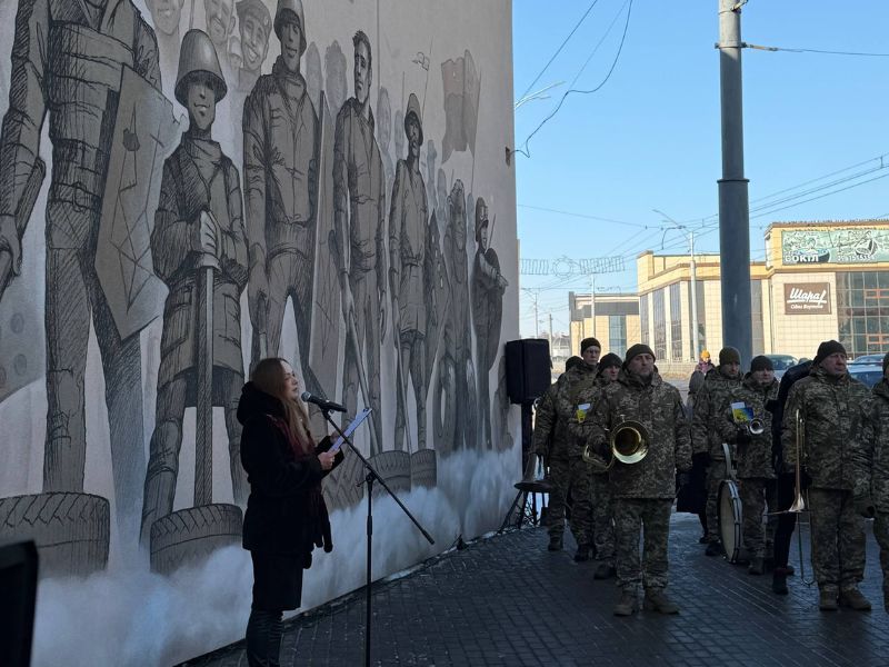 Представники міської влади, військовослужбовці, духовенство та жителі громади зібралися, щоб вшанувати учасників Революції Гідності, які загинули під час протестів у Києві у лютому 2014 року.