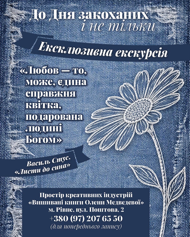 До Дня закоханих — і не тільки — у Рівному відбудеться особлива подія для тих, хто шукає глибших сенсів і теплих емоцій. Очільниця простору креативних індустрій «Вишивані книги» Олена Медведєва запрошує на ексклюзивну екскурсію, присвячену любові в найширшому її розумінні.