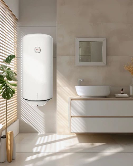 Спочатку визначте, який тип водонагрівача вам підходить. Накопичувальні бойлери (електричні або комбіновані) ідеальні для сімей: вони нагрівають великий об’єм води (50–150 л) і зберігають її гарячою завдяки товстій теплоізоляції. У 2026 році популярні slim-моделі глибиною 27–35 см, які легко поміщаються в ніші ванної чи за меблями. Проточні водонагрівачі — компактне рішення для кухні чи душу: гаряча вода з’являється миттєво, без накопичення та ризику бактерій у застої. Вони економлять місце та підходять для невеликих осель або дач.